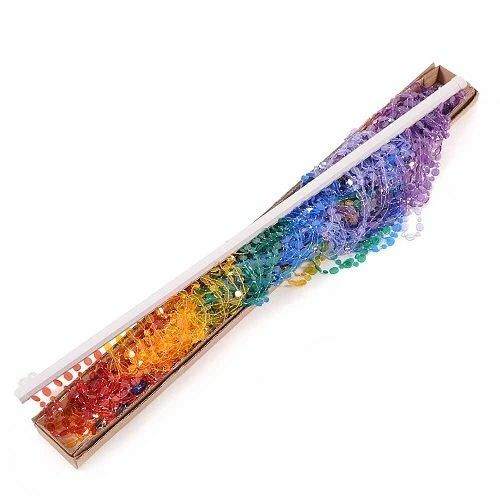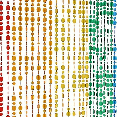 Dit kralengordijn met pailletten hangertjes zorgt voor een vrolijke noot in huis. De pailletjes hebben een platte vorm en zijn afgewisseld door grote en kleine hangertjes. Het kralengordijn wordt over het algemeen gekocht om deuropeningen binnenshuis te voorzien van iets decoratiefs. Uiteraard kun je dit deurgordijn ook als zijnde vliegengordijn in de opening van je buitendeur hangen, maar er zit wel wat ruimte tussen de strengen, veel vliegen zullen worden tegengehouden, maar ongetwijfeld zullen er ook wat tussendoor naar binnen vliegen als je deze hele dag je deur open hebt staan.