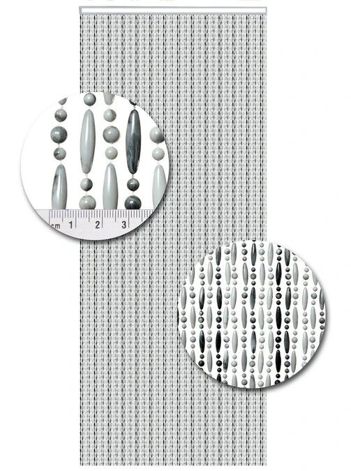 Dit zijn kwalitatief gezien echt goede kralengordijnen. De draadjes die gebruikt zijn, zijn gemaakt van nylon en dus extra sterk. De kunststof kralen zijn stuk voor stuk aan het nylon draad gesmolten. Het geheel hangt aan een witte cassette. Het is een vrij dicht kralengordijn waarbij er op circa elke centimeter een streng hangt. Om als voorbeeld even een vliegengordijn met een breedte van 90cm te noemen; hier hangen circa 90 strengen aan.