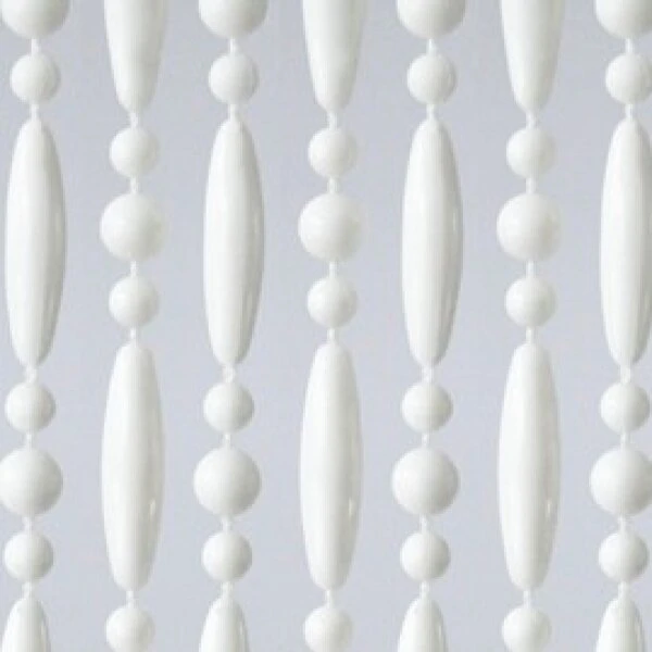 Dit zijn kwalitatief gezien echt goede kralengordijnen. De draadjes die gebruikt zijn, zijn gemaakt van nylon en dus extra sterk. De kunststof kralen zijn stuk voor stuk aan het nylon draad gesmolten. Het geheel hangt aan een witte cassette. Het is een vrij dicht kralengordijn waarbij er op circa elke centimeter een streng hangt. Om als voorbeeld even een vliegengordijn met een breedte van 90cm te noemen; hier hangen circa 90 strengen aan.