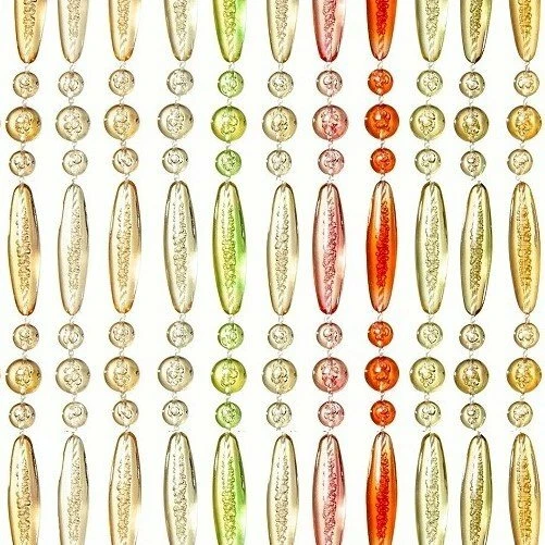 Luxe kralengordijn gemaakt van nylon draad. De kunststof kralen zijn stuk voor stuk aan het nylon draad gesmolten. Het geheel hangt aan een kunststof witte cassette.